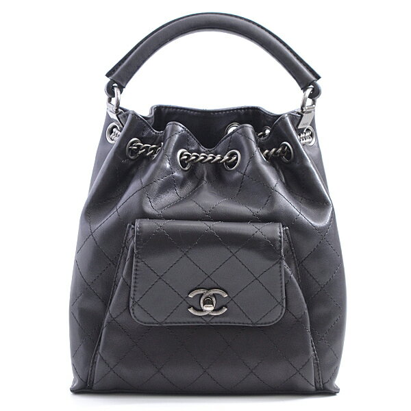 【中古良品】シャネル (CHANEL) バックパック マトラッセ ラムスキン レザー ブラック レディース チェーン リュック 巾着 【ランク:A】us-2