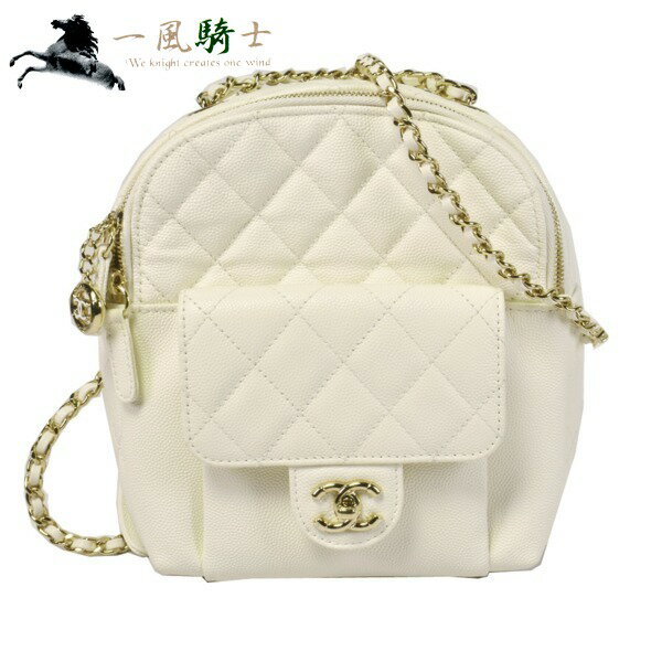 361977【中古】【CHANEL】【シャネル】バックパック マトラッセ キャビアスキン アイボリー